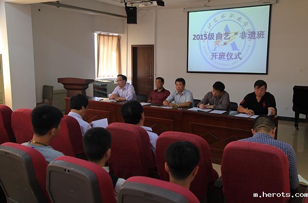 9月18日下午,我院与河北省曲艺家协会、河北省非物质文化遗产保护中心合作开办的全省首个曲艺非遗特色班在11楼会议室举行2015级新生开班典礼。学院院长庞彦强,河北省曲艺家协会主席陈小平、副主席袁继民,河北省非物质文化遗产保护中心主任杜云生以及12名新生参加仪式。典礼由副院长李建锁主持。