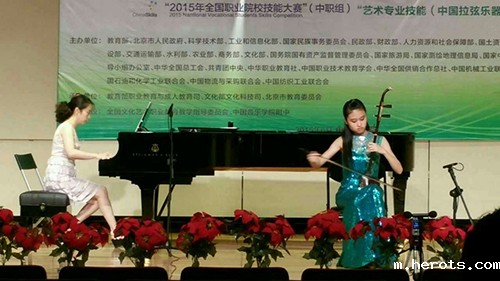 2015年6月12---17日,我院音乐系师生在教务处马海峰的带领下参加了在北京中国音乐学院附中举行的全国职业院校技能大赛中职组艺术专业技能(中国拉弦乐器演奏)比赛。音乐系2011级器小学生李心怡、王晨瞩分别获得比赛的三等奖。