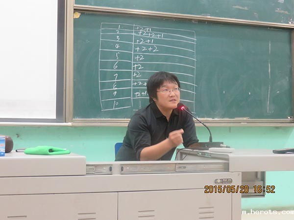 美术系杨宇翔老师结合图片视频介绍了在美国举办个人画展、讲学、写生和观摩博物馆的情况。讲座期间,美术系王旭老师和杨老师共同示范了讲座辩论的规范和技巧,激发了学生的提问热情,达到了分享与交流的效果。