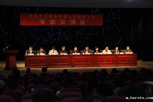 10月19日下午,我院人才培养工作专家反馈会在四楼剧场举行。河北省高等职业院校人才培养工作评估赴我院专家组全体成员出席了反馈会,河北省文化厅艺术处处长庞彦强专程前来参加了反馈会。我院党委书记赵宗更、党委副书记延凤宇、副院长李建锁、副院长刘飞,以及学院全体教职员工、学生代表共300余人参加了会议。反馈会由专家组副组长马东霄教授主持。