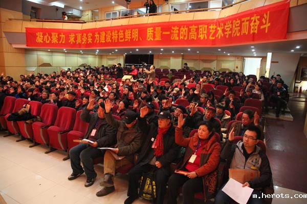 报告首先总结了学院升高职十二年来的主要工作。报告指出,院党委团结带领全体师生员工,坚持特色办学,坚持科学发展,较好地实现了从中专向高职内涵建设的提升与转型,2008年以良好成绩通过教育部人才培养工作水平评估,今年10月通过新一轮人才培养工作评估,学院各项事业取得了全面发展,这突出表现在八个方面:一是办学定位符合发展实际;二是教师队伍素质显著提升;三是专业建设取得重大进展;四是教育教学质量不断提高;五是艺术创作彰显办学实力;六是学生工作呈现新气象;七是办学环境显著改善;八是党的建设取得新成绩。