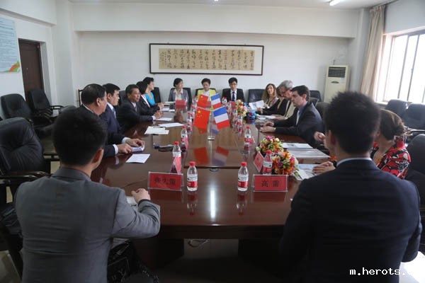 4月16日下午,中法艺术院校交流座谈会在学院九楼会议室举行。法国巴黎歌剧院演奏家、合唱指挥家大卫·占邦,法国国立高等音乐舞蹈学院副院长及指挥系主任让·路易·弗列斯特等来我院开展文化交流的法国国立高等音乐舞蹈学院专家团一行9人,学院党委书记赵宗更、院长庞彦强共同出席了交流座谈会。副院长李建锁主持座谈。教务处、舞蹈系、音乐系、社教部负责人以及多家新闻媒体代表参加了座谈会。