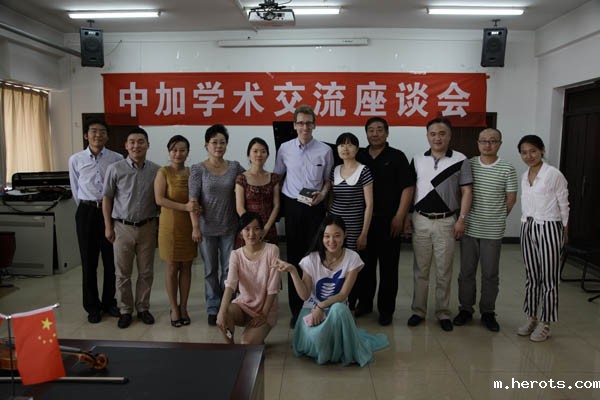 5月30日,加拿大阿尔伯塔大学音乐学院小提琴教授Guillaume Tardif、演奏家邓粤对我校进行友好访问。双方在11楼会议室举行会谈,省教育厅国际教育交流中心交换生项目负责人剧永磊、张熙,我院副院长李建锁以及音乐系主任陈红,音乐系、综艺系相关教师参加会议。