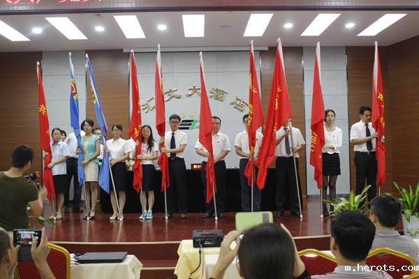 培训班举行了河北省省直机关共产党志愿者协会揭牌暨专业志愿者服务队授旗仪式,文化厅机关党委副书记高扬为我院教师授旗,授旗仪式标志着善行河北•扶贫帮困“春雨行动”志愿者项目的正式启动。