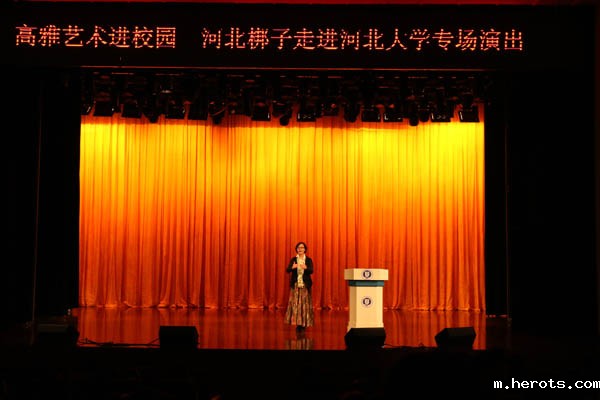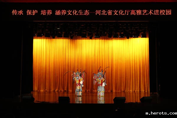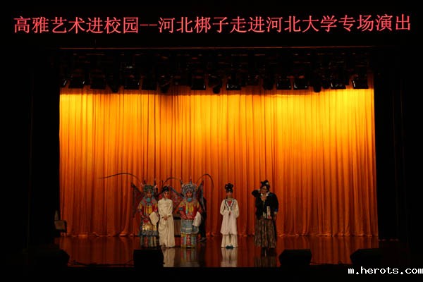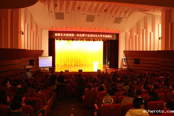 2014年12月4日晚,《燕赵戏韵》进校园讲、演会在河北大学音乐厅准时开始。我院纪委书记张学红,河北大学马克思主义学院党委书记谷峰、校团委副书记李卫森、张小升及河大部分师生代表参加了讲、演会。