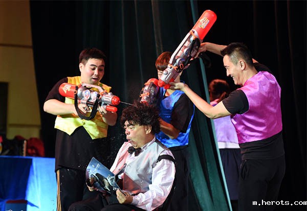 9月29日,国家艺术基金项目“滑稽表演人才培养培训班”在我院举办结业汇报演出。河北省政协副主席、中国文联副主席、第15届中国吴桥国际杂技节评委会主任边发吉,河北省文化厅党组书记王离湘,第15届中国吴桥国际杂技节组委会办公室主任李新杰,第15届中国吴桥国际杂技节演出部部长、河北省文化厅艺术处处长齐大伟,评委、授课教师、培训班全体学员,我院党委书记赵宗更、院长庞彦强、副院长李建锁以及部分专业师生代表观看了演出。