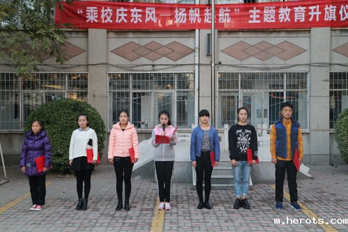 2015年11月2日清晨,院团委组织的“乘着校庆的东风——扬帆起航”主题教育升旗仪式,在学院运动场举行。学院党委副书记延凤宇、学生处团委教师、各专业系学生管理负责人、全体辅导员和全体学生参加了本次活动。