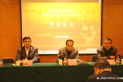 12月21日至12月23日,由河北省文化厅主办、省文物局与我院承办的2015年河北省省直文博专业技术人员培训班在唐年酒店举行。来自省直文博系统的各级领导、专业技术人才共50人参加了培训。河北省文化厅人事处处长冯国芳、省文物局副局长韩立森、我院党委书记赵宗更、副院长李建锁出席开班典礼。