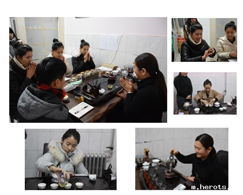 茶艺培训采用讲座和实践相结合的方式。培训教师在给同学们讲授了茶叶的分类、主要名茶的品质特点、制作工艺以及茶叶的鉴别、选购等基本知识后,现场示范进行茶艺展示。老师以绿茶为例,讲授了茶杯的选择、投放方法、水温的要求、冲泡技巧以及品茶的顺序等内容,指导和规范同学们的动作要领。大家饶有兴趣地聆听讲座,并认真地做着笔记,在老师的带领下进行实践。同学们纷纷表示,通过培训和讲座,不仅领略了茶艺文化的经久魅力,还陶冶了情操,增长了知识和技能。