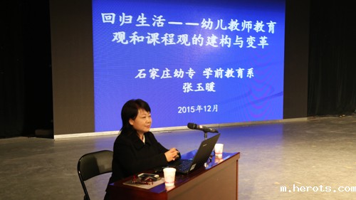 2015年12月24日上午,综艺系在四楼剧场举办了“回归生活——幼儿教师教育观和课程观的构建与变革”的专题讲座,由石家庄幼儿师范高等专科学校学前教育系教学负责人张玉暖老师主讲,学前教育专业二百余名师生聆听了讲座。