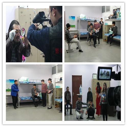 在学院地下室搭建的室内场景拍摄现场,各类精密的收声、照明器材以及仿真的道具一应俱全。随着导演发出“开机,走板,开始!”的指令,两台高清摄像机前,来自传媒系及其他兄弟系部的老师、同学们专注地刻画着在剧中所饰演的人物形象,表情、走位、对白有板有眼。趣味横生的剧情,惟妙惟肖的表演都令在远处观摩的师生忍俊不禁。