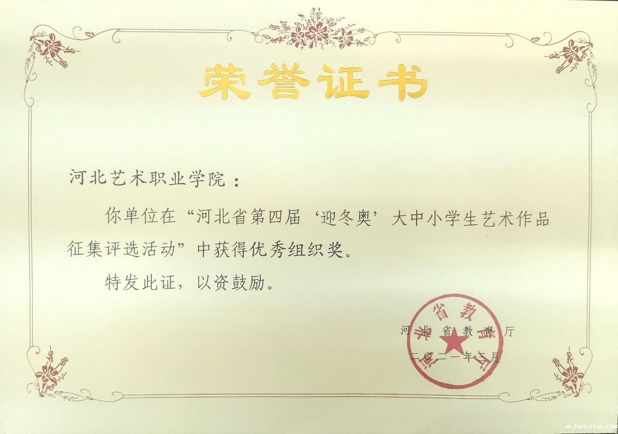 在近日河北省教育厅公布的《河北省第四届“迎冬奥”大中小学生艺术作品征集评选活动获奖名单的通知》中获悉,我院共有13项作品获奖,其中,绘画作品一等奖1项,二等奖3项,三等奖3项;设计作品一等奖1项,二等奖1项,三等奖4项。学院荣获优秀组织奖。具体情况如下: