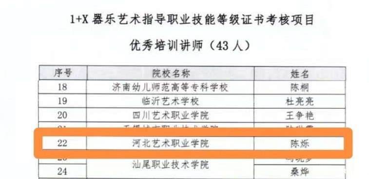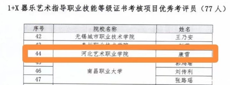 日前,18luck快乐彩被评为“1+X器乐艺术指导职业技能等级证书“优秀考核站点,音乐系教师康雪荣获优秀考评员、陈烁荣获优秀培训讲师、田芳荣获优秀考务工作者。