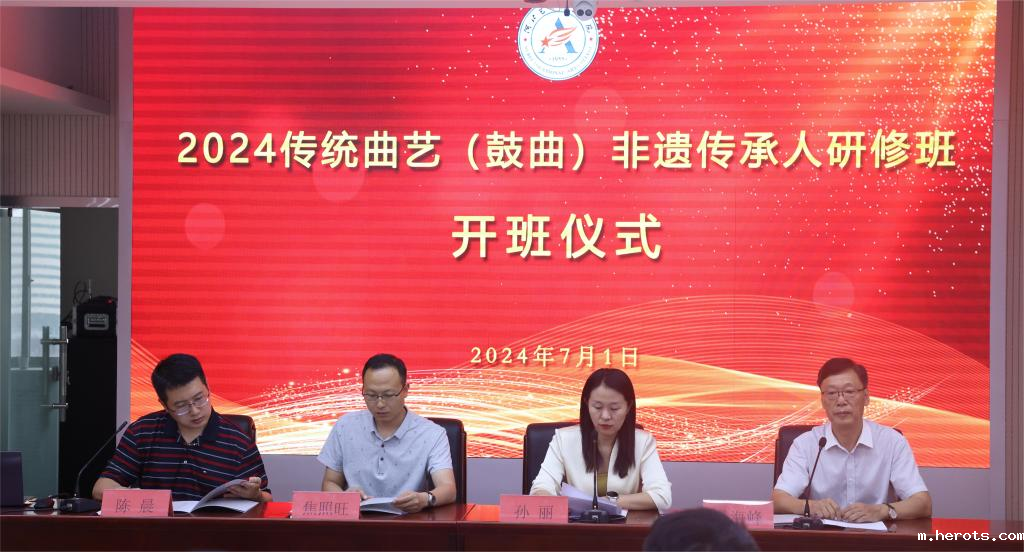 7月1日,由文化和旅游部、教育部、人力资源和社会保障部共同主办、18luck快乐彩承办的“2024传统曲艺(鼓曲)非遗传承人研修班”在我院正式开班。河北省文化和旅游厅非物质文化遗产处处长孙丽出席开班仪式并讲话,学院党委委员、社会教育部主任马海峰致欢迎辞,河北省文化和旅游厅非物质文化遗产处副处长焦照旺和来自全省的24名曲艺(鼓曲)演员参加了开班仪式。仪式由河北省曲协副主席、学院社会教育部继续教育科科长陈晨主持会议。