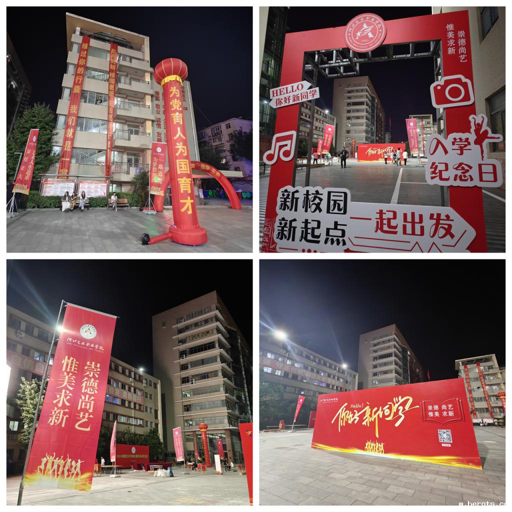 独具特色的迎新桁架展板、宣传大屏,充满温馨的迎新条幅将校园装饰一新,处处洋溢着迎新的喜庆氛围,饱含着对新同学最诚挚的欢迎与祝福。