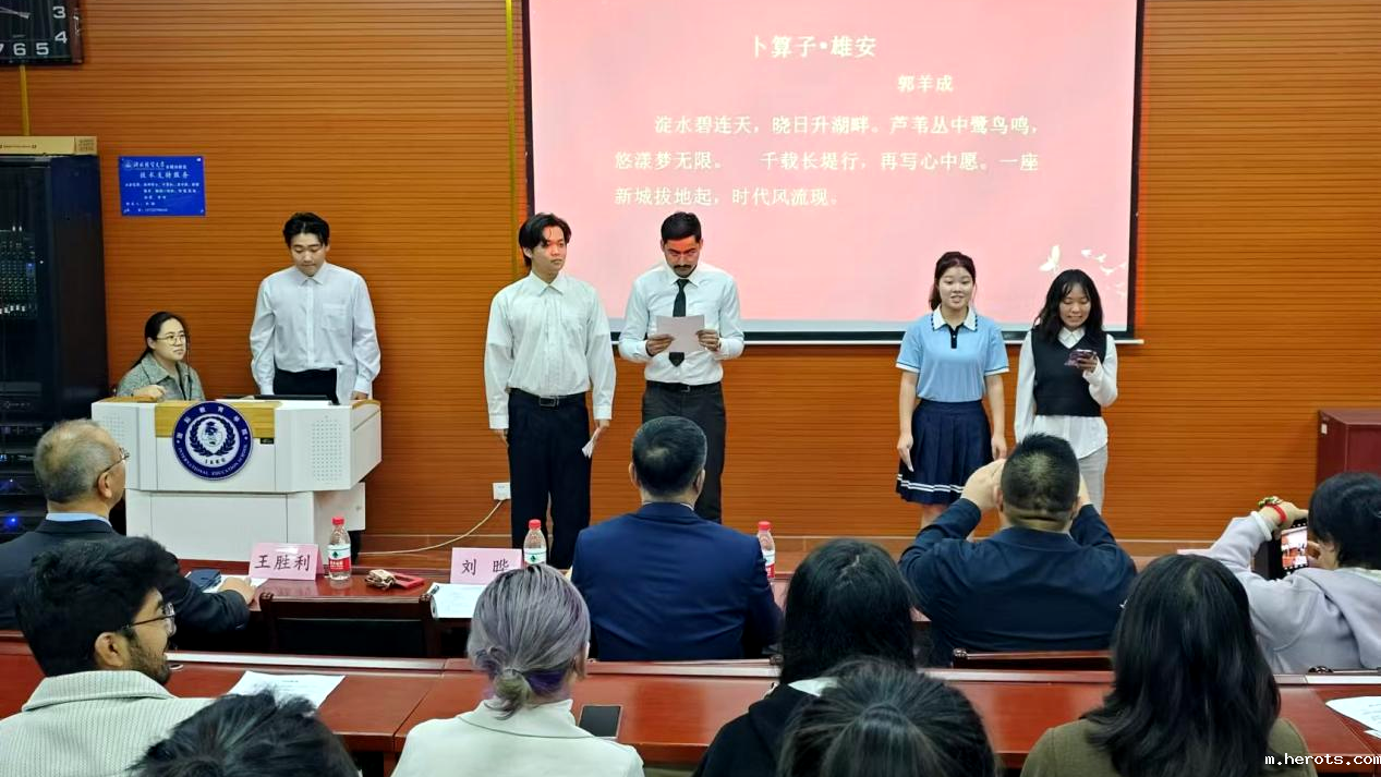 11月13日,由河北省诗词协会对外交流中心策划统筹,18luck快乐彩影视系和河北经贸大学国际教育学院共同承办的“未来之城,雄安之师,四海之咏”——中外大学生雄安题材诗词朗诵会活动在河北经贸大学成功举办。