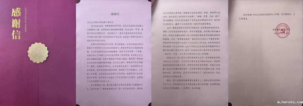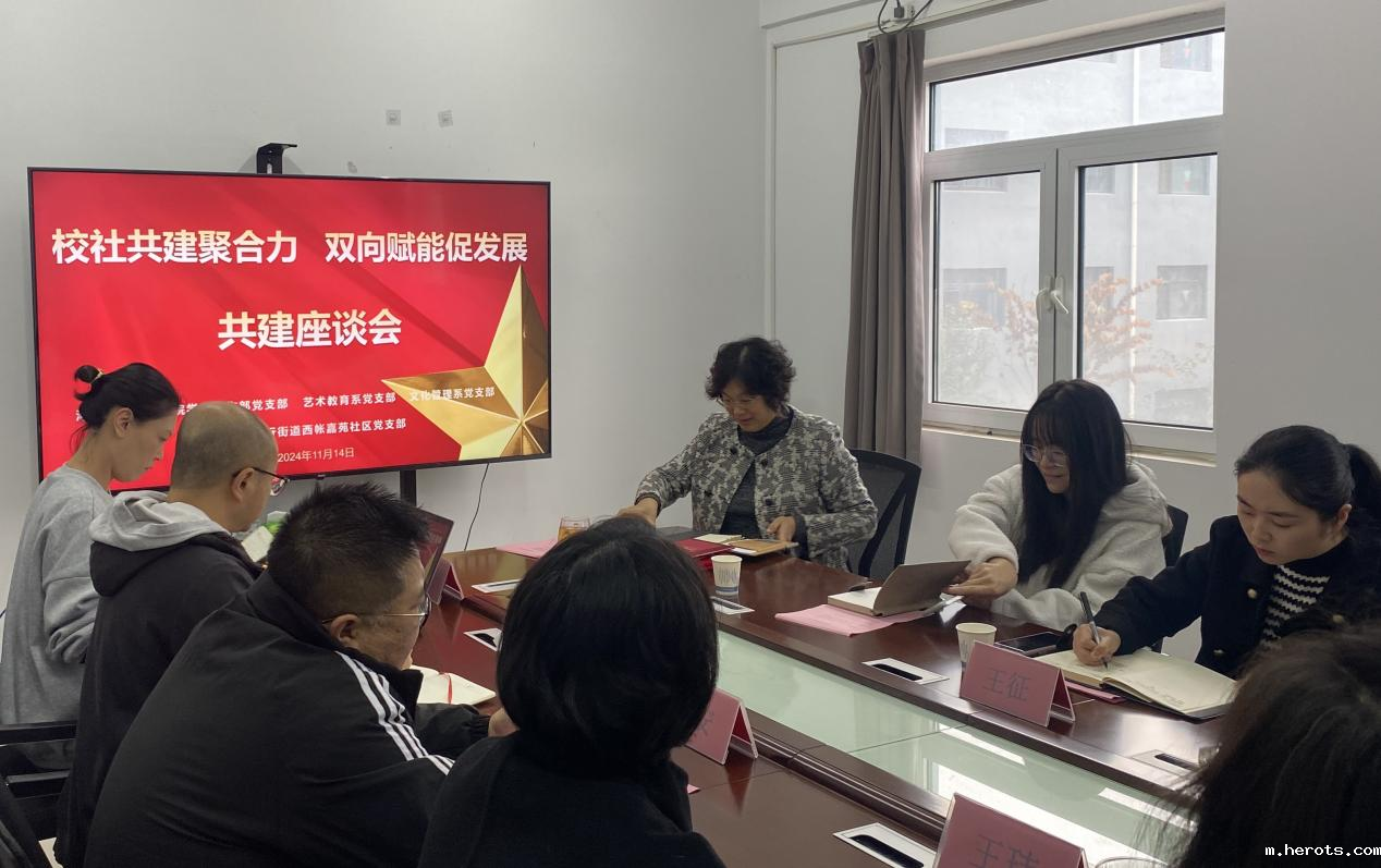11月14日,石家庄高新区太行街道西帐嘉苑社区党支部书记王征一行四人来到18luck快乐彩漓江道校区,向18luck新利官网登陆赠送了“党建引领聚合力 校社共建谱新篇”锦旗和表扬信,并与学院学生工作部、艺术教育系、文化管理系师生代表开展共建座谈会。