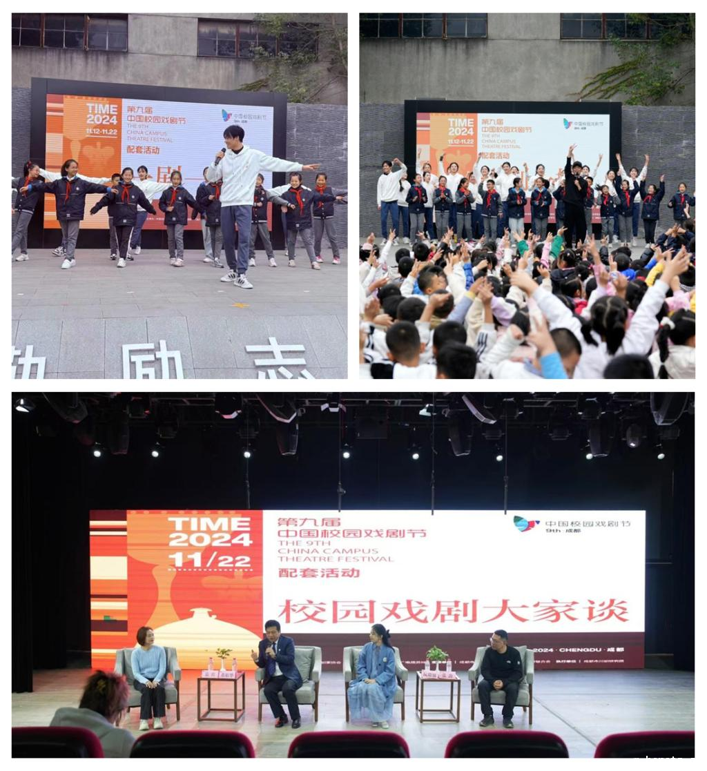 除剧目展演外,本次校园戏剧节还实现了与校园和社会的充分联动。《无字家书》剧组积极参与“一剧进一校”文艺服务活动走进成都市奥林小学,由高东老师带领学生们领略舞剧的魅力,通过舞蹈启蒙和片段展示,激发了儿童对舞蹈艺术的浓厚兴趣。同时,马巍老师前往四川师范大学,与其他优秀剧目团队进行了深入的创作交流,分享了《无字家书》的创作历程及所遇到的挑战,表达了舞剧艺术应更加贴近人民、服务人民的愿景,引发了嘉宾们的强烈共鸣。