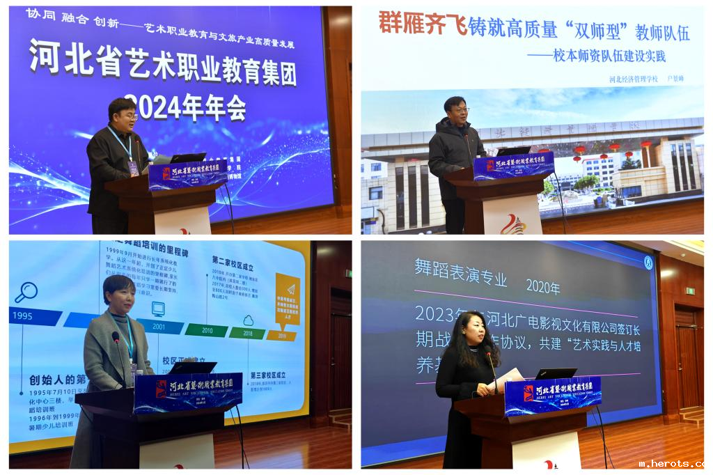 2024年12月31日上午,由河北省艺术职业教育集团主办,18luck快乐彩承办的河北省艺术职业教育集团2024年年会在定州市博物馆召开。省文化和旅游厅科技教育处处长王进军,河北演艺集团党委书记、董事长张雪燕,18luck快乐彩党委书记蒋国新、院长冯彦瑞等负责同志出席年会。定州市文化广电和旅游局党组书记、局长秦鹏出席年会并致欢迎词。集团内来自全省60余家文旅产业、艺术教育相关企事业单位和中高职院校的代表120余人参加年会。
