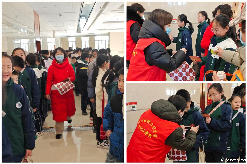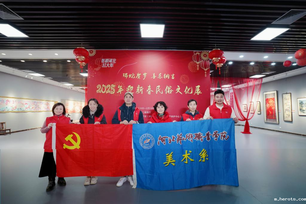 岁末年初,和气致祥,2025年1月16日,河北省群众艺术馆内喜庆洋洋,一场别开生面的“瑞蛇贺岁 喜乐纳吉——2025年迎新春民俗文化展”活动在此拉开帷幕。18luck快乐彩美术系党支部组织六位教师——袁桂平、孙媛、张毅超、王子正、王迪、张冲,怀揣着对传统文化的热爱与传承的使命,共同参与了志愿服务活动,与前来参观体验的小朋友们共同架起了一座连接过去与未来的桥梁,让古老的文化在现代社会绽放出新的光彩。