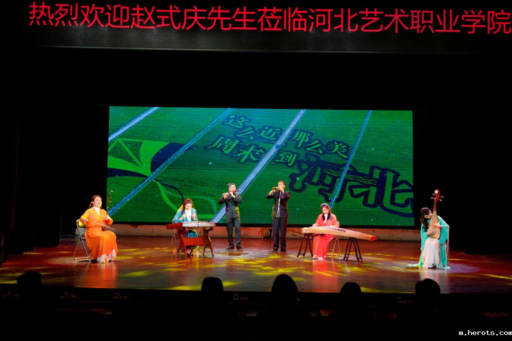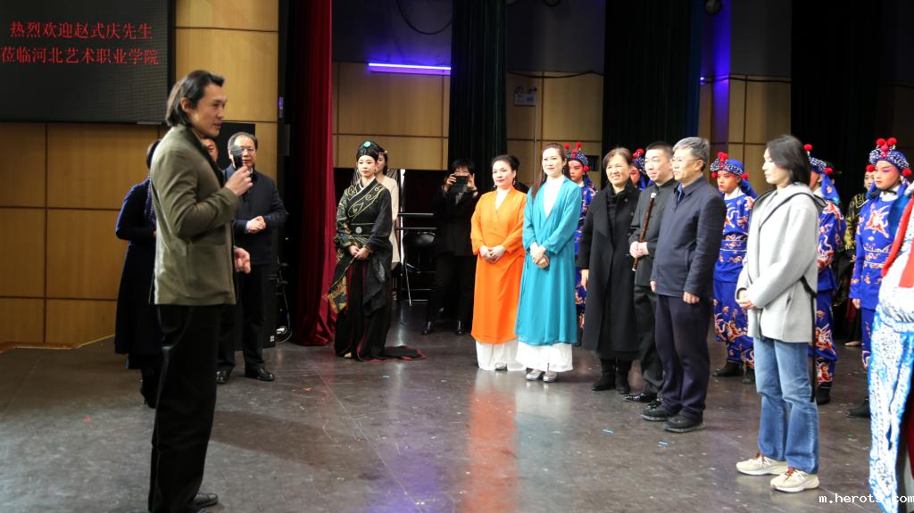 赵先生对学院在传统文化传承创新方面的工作给予了高度肯定。他表示,看了你们的精彩演出大受鼓舞、很受启发,演出把传统文化、非遗内容通过艺术形式进行了很好的探索、融合,师生们都训练有素、功底深厚。学院在坚守传统的同时勇于创新,更难得的是师生们对艺术的热情投入。河北拥有丰富的文化和各类资源,自古以来就是中国文化多民族融合的集大成的地方,我从你们的文化基因和演出里面看到了很大的潜力,相信你们未来的创意会给全国各地带来很多新的启发,期待未来有更多的交流机会。