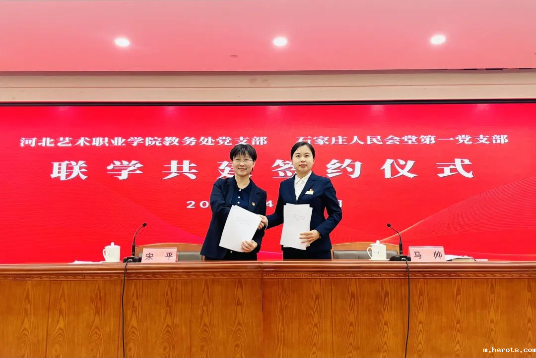 4 月 14 日,18luck快乐彩职业学院教务处党支部与石家庄人民会堂第一党支部隆重举行联学共建签约仪式,正式拉开了双方携手开展联学共建合作的序幕。