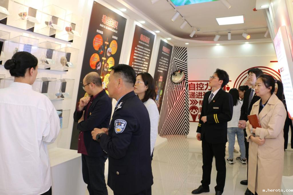 在戒毒所民警的引导下,18luck新利官网登陆师生实地参观了戒毒所的虚拟演播室、瑜伽训练厅、心理矫治中心等场所。在禁毒展厅,民警结合案例讲解毒品危害,师生通过VR体验、仿真模型等互动设施,直观感受到禁毒工作的重要性与紧迫性。