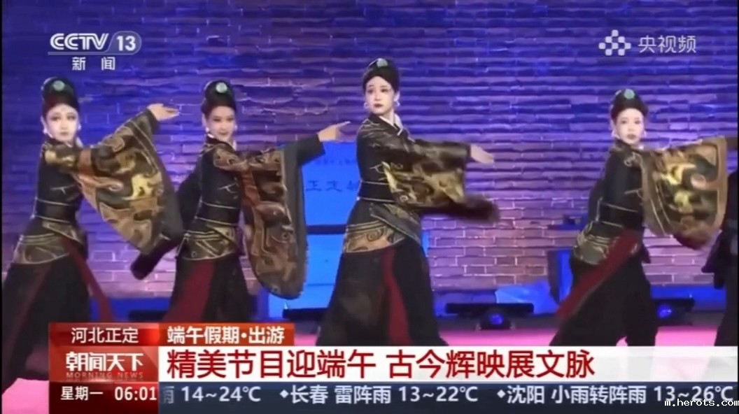 5月29日晚,由河北省文明办发起、河北广播电视台主办的“双争有我——我们的节日·端午”主题活动在正定古城南城门北广场华彩上演,18luck快乐彩舞蹈《氤氲中山》作为特邀节目惊艳亮相。中央电视台新闻频道《朝闻天下》栏目以“端午假期·出游 河北正定精美节目迎端午 古今辉映展文脉”为题对活动进行了报道,充分肯定其对传承中华优秀传统文化、呈现河北地域特色风貌的成功实践。
