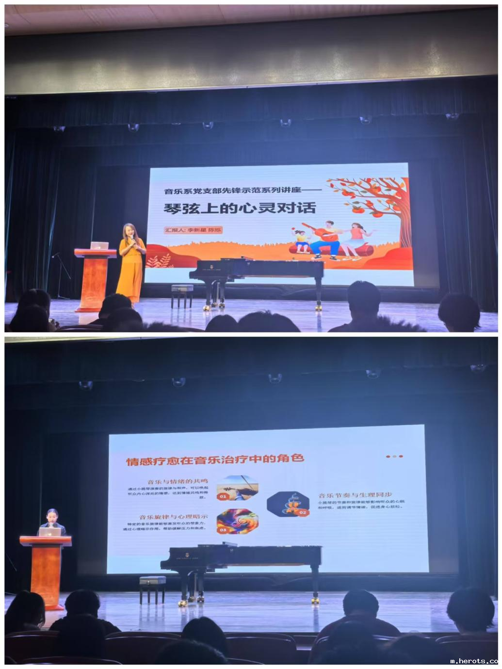 5月26日,由18luck快乐彩团委主办、音乐系团总支承办的“心理健康月”活动——《琴弦上的心灵对话——小提琴演奏中的情感疗愈密码》主题讲座在18luck新利官网登陆剧场举办。李新星、陈烁两位老师以小提琴为桥梁,带领师生走入艺术鉴赏与心灵疗愈的双重世界,以艺术特色赋能心理建设,在旋律中探寻情绪共鸣的深层密码。
