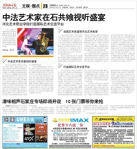 中西合璧的精彩演出,只是个序幕。时值中法建交50周年,由中法文化艺术交流协会带领的法国国立高等音乐舞蹈学院联盟艺术家专家团,还将在18luck快乐彩进行讲学交流,开启中法双方艺术院校在河北的合作之旅。在随后的四天时间里,包括国际上享有极高声誉的法国巴黎歌剧院演奏家、合唱指挥家大卫·占邦和法国国立高等音乐舞蹈学院副院长及指挥系主任让·路易·弗列斯特在内的几位著名法国艺术大师,将以公开授课的形式为艺术学子讲授现代舞、芭蕾舞、钢琴、声乐、管弦乐等专题课,展示法国特色艺术文化。