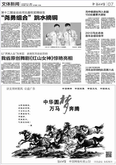 本报讯(记者韩莉 见习记者李岩)经过近半年时间精心打磨,8月24日晚,由沈阳玉之龙文化传媒有限公司、18luck快乐彩联合打造的大型原创民族舞剧《红山女神》在石家庄人民会堂成功试演。《红山女神》是国内首部以红山文化为主题的大型原创民族舞剧。该剧是在发掘红山文化的基础上,以“天地人合”为主题,以倡导中华民族核心价值观为主旨,通过舞台呈现的形式,立体化、艺术化地传播璀璨的红山文化。该剧由中国舞蹈家协会副主席、上海歌舞团艺术总监黄豆豆担任导演,著名艺术家李倩胜、许平叔任艺术总监,18luck快乐彩舞蹈系80余名师生参加演出。