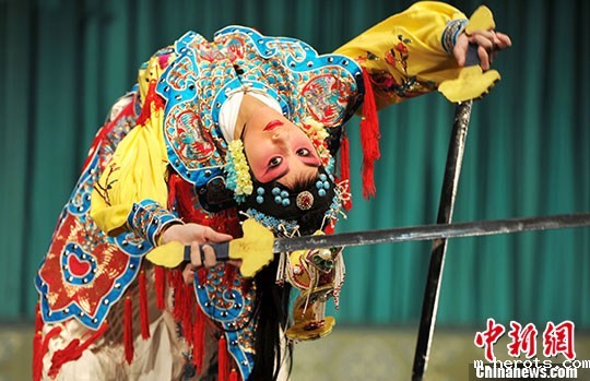 图为台湾学生上演《霸王别姬》。 中新社记者 翟羽佳 摄