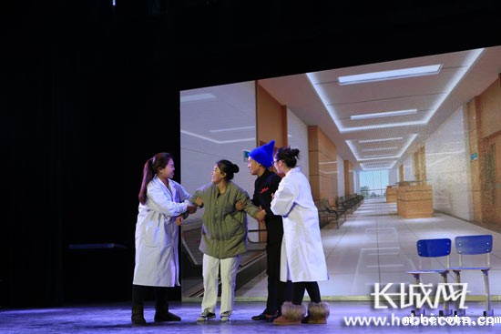 经过激烈比拼,美术系同学表演的小品《废耳de轰》获得一等奖。歌曲串烧《我爱你中国》、小品《看病》、哑剧《环卫工人》等节目分获二、三及优秀奖。《废耳de轰》演出了几位手机病患者进入手机病医院进行治疗的故事。同学们以幽默夸张的方式关注了当代人沉迷手机所形成的各种“病态”,讽刺了随着科技的发达,手机绑架了人们的生活,发人深省。