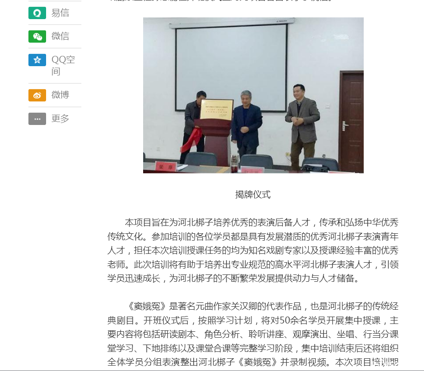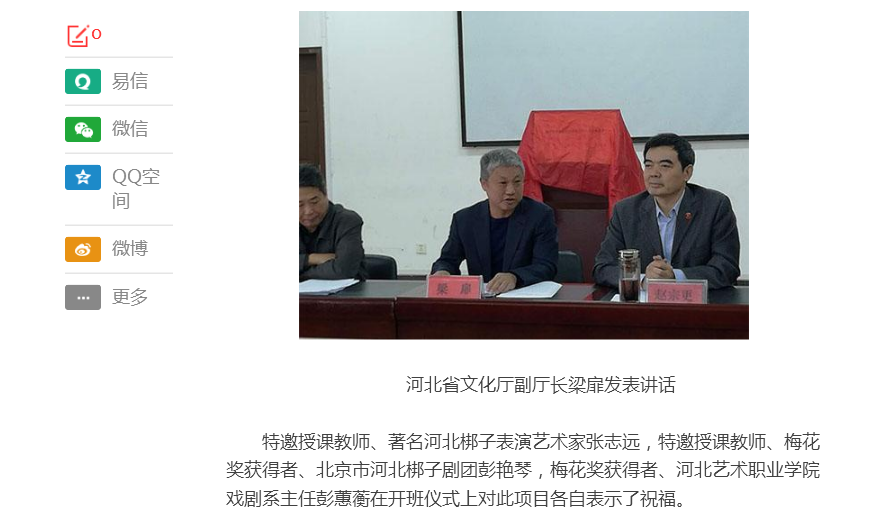 上一条:燕赵都市报:国家艺术基金2017年度艺术人才培养资助项目 “河北梆子《窦娥冤》青年表演人才培养”16日开班 下一条:长城网:国家艺术基金河北梆子青年表演人才培训班今日开班