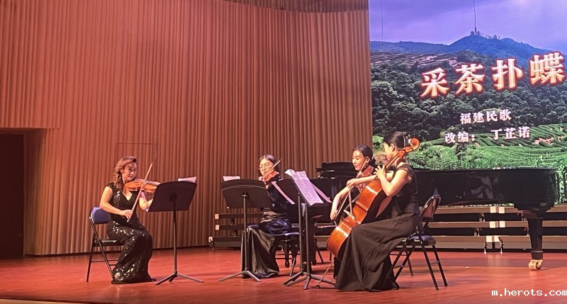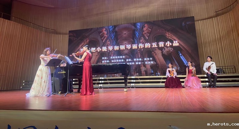 一首曲闭,音乐厅掌声雷动。随后,《思乡曲》旋律优美感人,传递出浓浓的思乡之情,《丰收渔歌》以小提琴独特的音色和演奏技巧,传达了渔民们对大海的热爱和对丰收的喜悦之情。肖斯塔科维奇的《为双小提琴和钢琴而作的五首小品》在李新星与同事和学生的完美配合下,将一曲曲或节奏明快或浪漫感伤的经典曲目演绎得淋漓尽致。《沉思》《当小号遇上小提琴》以及弦乐四重奏《采茶扑蝶》《快乐的萨利哈》等,小提琴与钢琴、竖琴、小号等不同的乐器的碰撞,展现了音乐的多重魅力,观众沉醉其中,跟着旋律轻叩节拍。