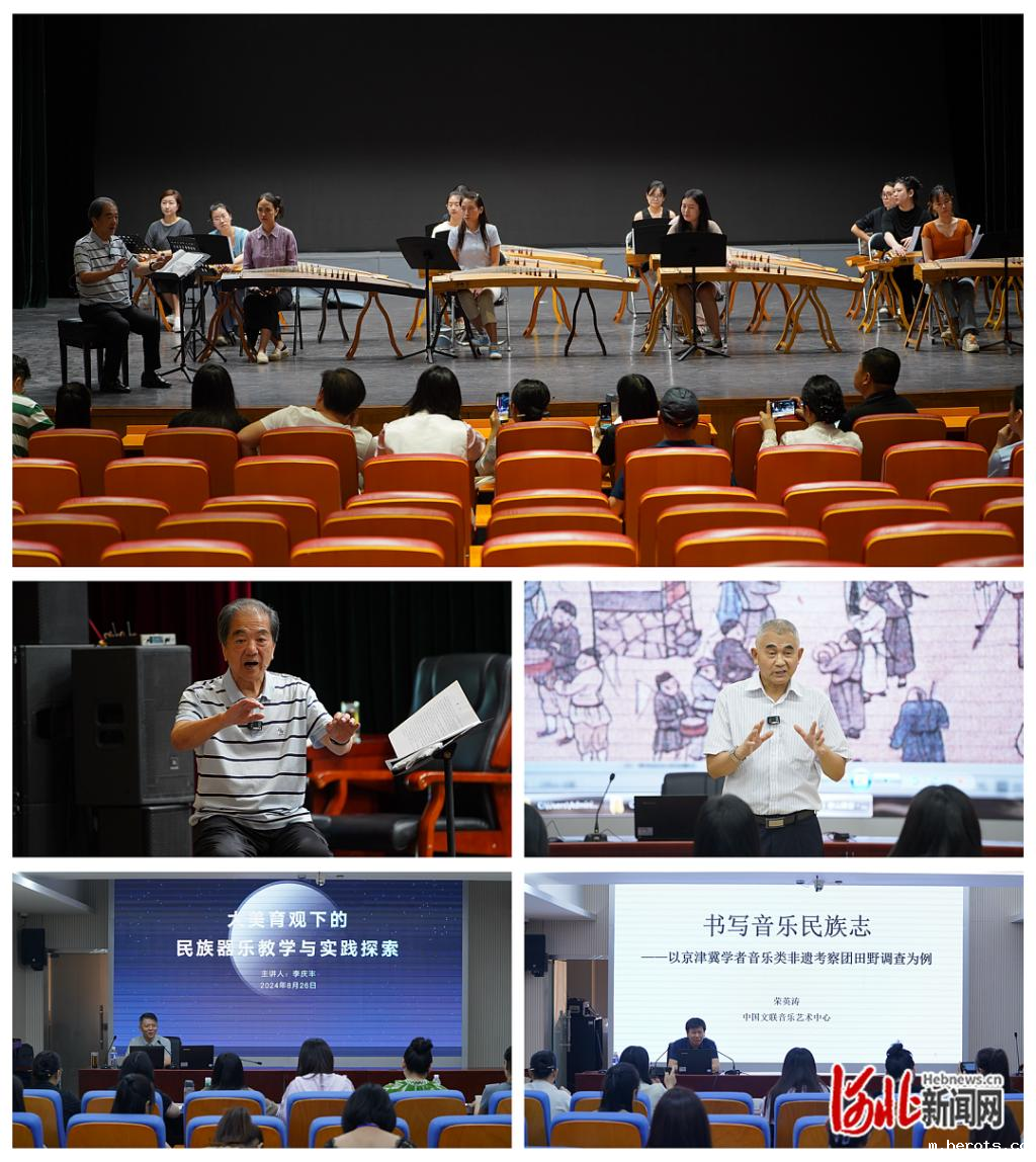 获得“民族音乐终身成就奖”的中国音乐学院曹文工教授从宏观层面讲授《中国传统音乐的传承、弘扬与发展》并具体指导组合实践教学,河北师范大学音乐学院胡小满教授围绕地域特色微观讲授《河北传统乐种的理论观照》,中央音乐学院王颖副教授讲授《民族器乐专业舞台表演中理论与实践相结合的创新发展》,安徽师范大学音乐学院李庆丰教授讲授《“大美育观”下的民族器乐教学与实践探索》,中国文联音乐艺术中心荣英涛讲授《书写音乐民族志——以京津冀学者音乐类非遗考察团田野工作为例》,各位专家将精湛的舞台艺术、深度的艺术思考浓缩成一堂堂教学与舞台相结合的精品课程。