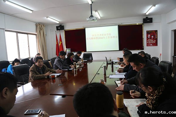 庞院长传达了2016年全省教育工作会议精神,对全年党政工作要点进行了部署,重点强调了12个方面的工作:一是加大课程建设力度,加快课程质量标准的制定,大力推进公开课和微课建设;二是制定并落实尖子生培养计划、优秀青年教师成长计划和双师型教师培养计划;三是制定教师游学、访学及挂职方案,支持鼓励教师不断提高自身的业务能力、学术和教学素养;努力推进开门办学工作,支持和鼓励优秀青年教师进企业、进学术团体,在实际工作中提升教学能力,取得双师资格;四是深入推进艺术采风活动,要在民间的文化根脉中建立自己的根据地,特别是音乐、舞蹈、美术等表演专业系,要与民间文艺组织建立良好的协作共建机制;五是量化科研指标,努力提升全院的科研能力和水平;六是要做好专业教师的考核工作,包括个人技术、教学能力、师德水平,构建进退有序的工作格局;七是加强学生教育和管理,提高学生的学习兴趣;八是加强干部队伍的培养教育,不断提高政治、道德修养和行政能力,强化规矩意识、程序意识、担当意识;九是加强财务管理,加强对学院和二级单位资金管理,加强国有资产精细化管理,合规用钱、高效用钱;十是提升管理水平,推进管理规范化、精细化,改善办学环境;十一是强化安全稳定工作,建设平安校园;十二是积极推进新校区建设,进一步推进新校区建设立项和可研工作。