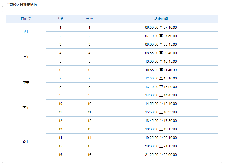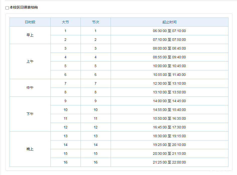 各校区日课表结构