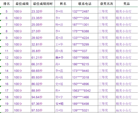 据统计,这次活动共吸引了全校数千名读者参赛,最终根据答题速度和答题准确率产生了28获奖者。现将榜单公布如下: