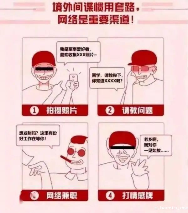境外间谍惯用的套路:拍摄照片、请教问题、网络兼职和打感情牌。