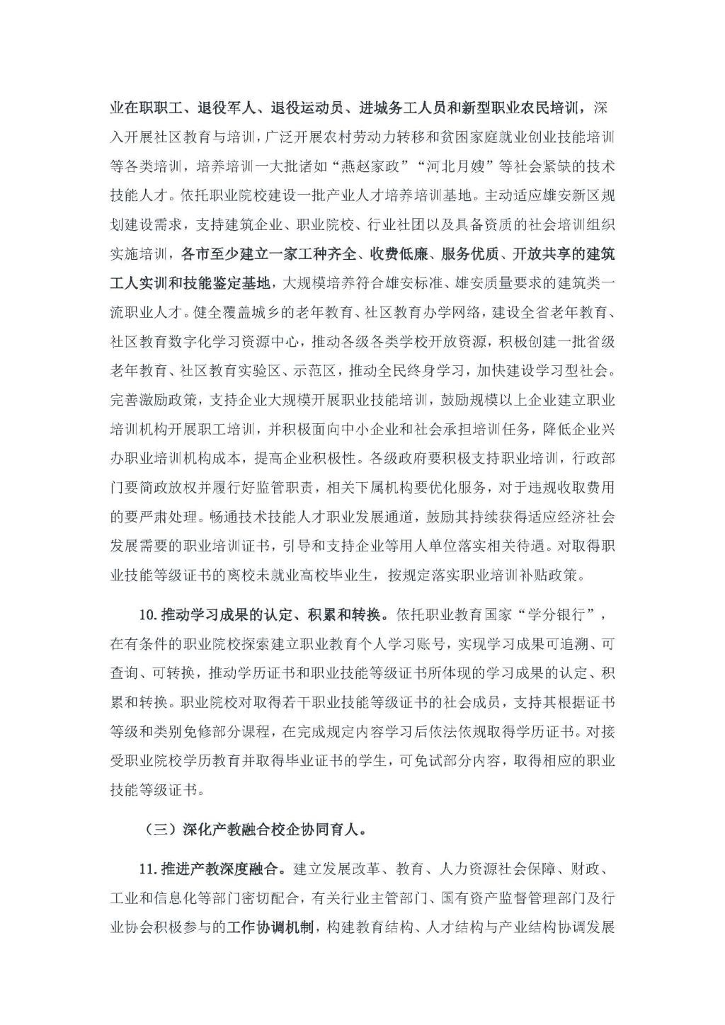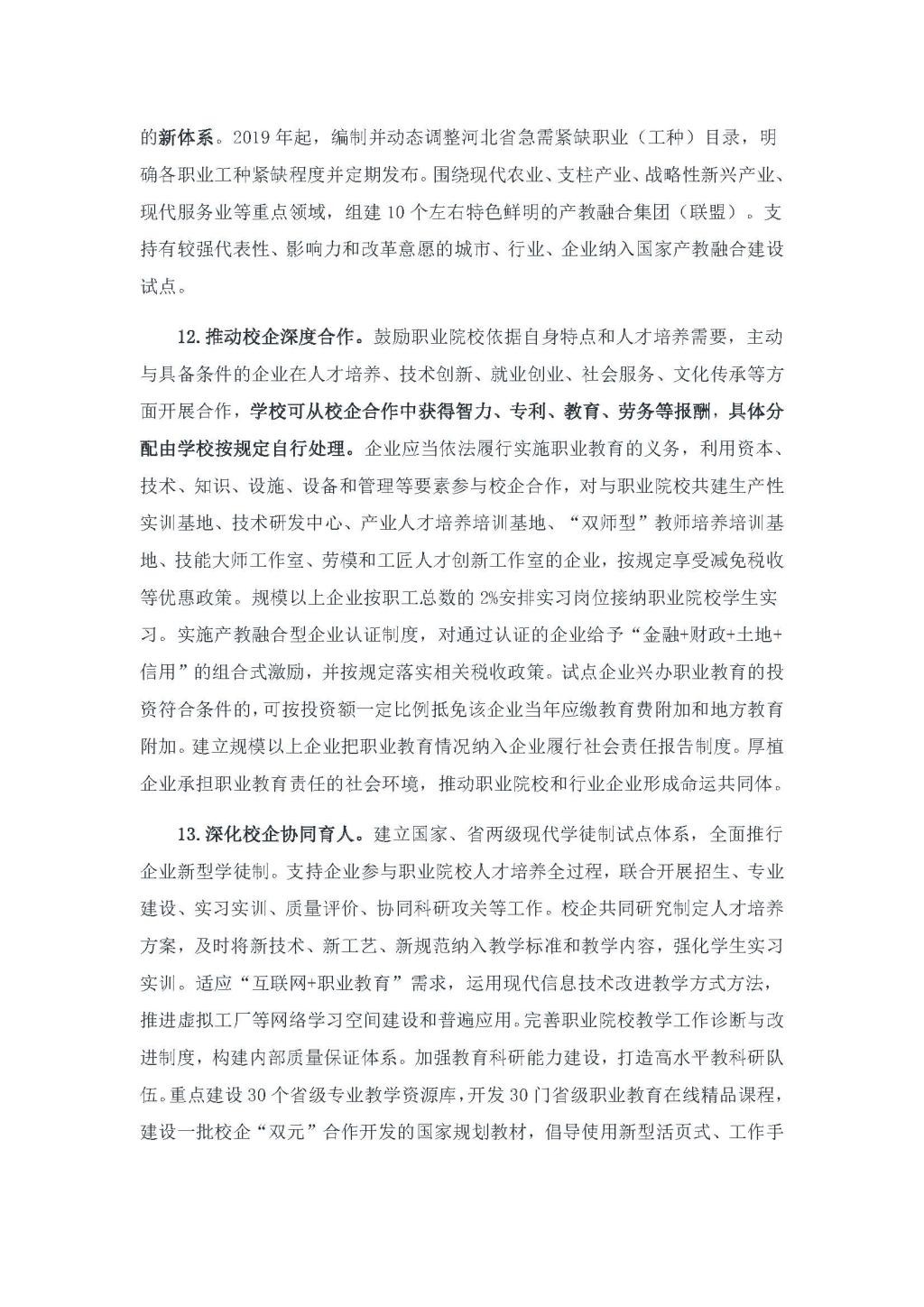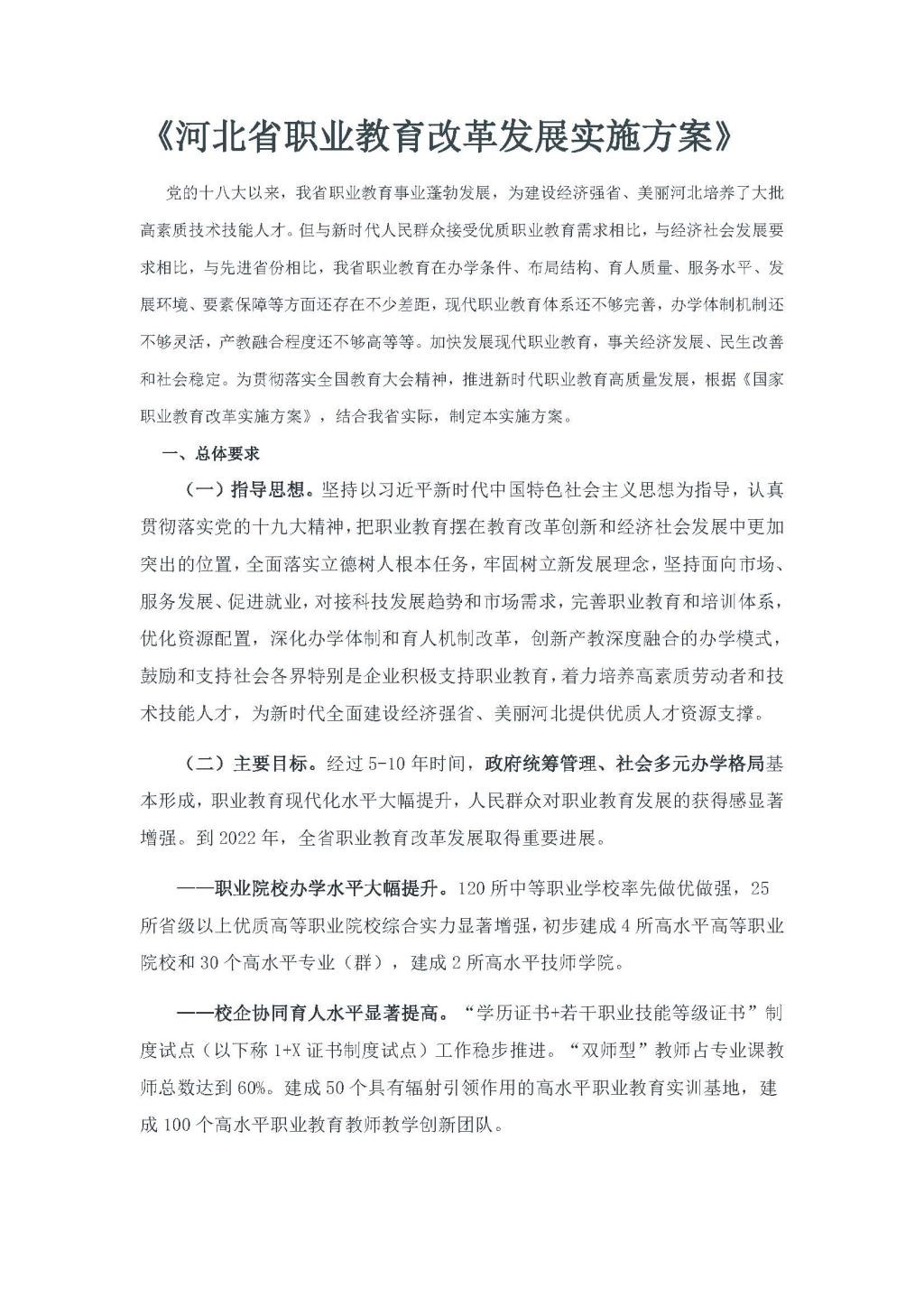 《河北省职业教育改革发展实施方案》