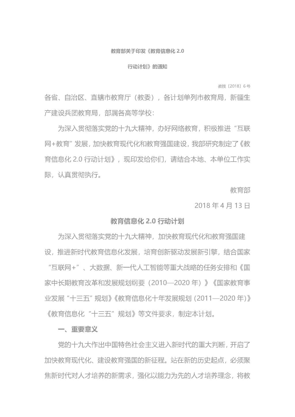 教育部关于印发《教育信息化2.0行动计划》的通知