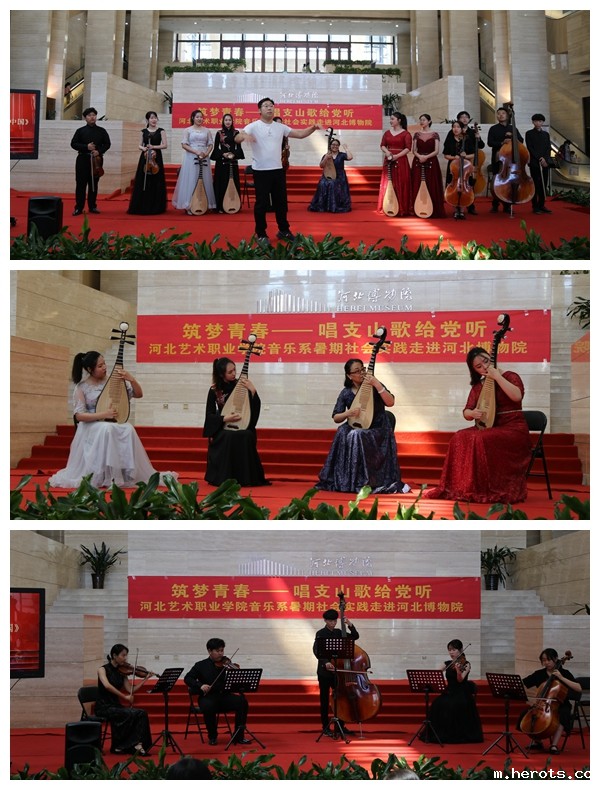 7月25日,为庆祝建党100周年,18luck快乐彩音乐系“筑梦青春——唱支山歌给党听”暑期社会实践小分队走进河北博物院,献礼党的百年奋斗、百年辉煌。来自18luck新利官网登陆音乐系的20余名师生参加了此次活动。