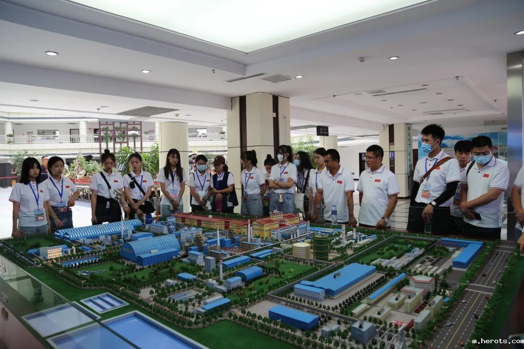 唐山作为一座重要的工业城市,钢铁企业在唐山占有举足轻重的地位,第三站来到了占地1800多亩员工4000多人的德龙钢铁厂,在这座钢铁厂中,全体师生感受着我国工业发展历程,在工作人员的带领下,参观钢铁厂的沙盘模型,了解钢铁厂的建筑布局,切身感受这座现代化钢铁企业的企业文化。