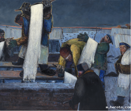 决战脱贫攻坚、决胜全面小康,极大增强了人民群众的获得感、幸福感、安全感,彻底改变了贫困地区的面貌,改善了生产生活条件,提高了群众生活质量。2020年春节前夕,王老师不顾严寒,带着画笔再次走进了承德围场朝阳湾镇孤山村,记录了那里热火朝天的脱贫致富场景……不舍昼夜的构思和创作,终于创作完成了反映脱贫攻坚主题的油画《扶贫奋楫者》。