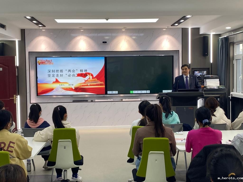 3月24日、25日,18luck快乐彩党委书记赵宗更以“深刻把握‘两会’精神 坚定走好必由之路”为主题分别为本校区美术系21级环艺2班、21级室内2班,以及东校区21级学前7、8班各讲了一堂生动的思政课。在对“两会”内容进行了系统全面的梳理后,赵书记主要围绕“五个必由之路”和 “五个有利条件”进行了详细阐述。