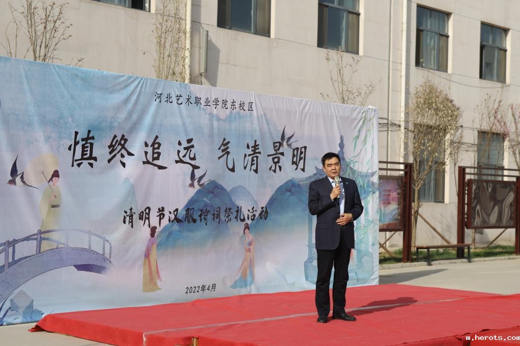 活动伊始,赵宗更书记上台与东校区师生见面。他代表学院党委及领导班子,对东校区师生表示诚挚的慰问,感谢这一段时期以来各位老师的辛勤付出,感谢同学们的积极配合,希望大家再接再厉,共同维护这来之不易的防疫成果。同时预祝本次“慎终追远 气清景明”清明节汉服诗词祭礼活动圆满成功!