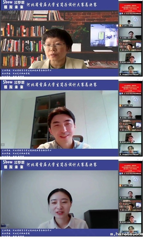 5月28日下午,河北省首届大学生简历设计大赛暨大型线上模拟招聘活动总决赛在18luck快乐彩成功举办,来全省各高校的14名2022届毕业生角逐参赛。河北省教育厅教育厅学生就业创业事务中心主任王士平、18luck快乐彩副院长金暄出席活动,猎聘集团招聘总监吕淑华、昂立教育集团行政与人力资源部总经理赵宇亮以及杭州高能投资咨询有限公司首席招聘官胡雪玲共同担任评委工作。