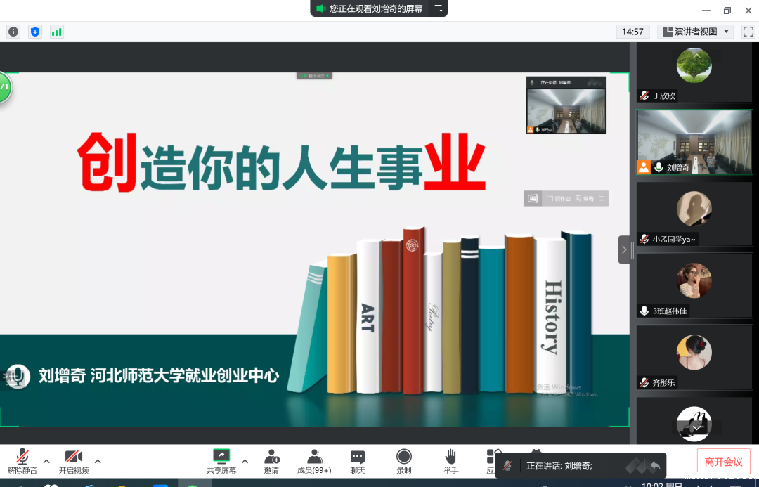为帮助学生了解就业创业形势,培养良好的创业就业素质,激发创业就业精神,树立正确的择业观和价值观,10月2日上午,18luck快乐彩邀请河北省创业指导专家、河北师范大学就业创业中心副主任刘增奇做客就业创业系列讲座空中课堂,以“创造你的人生事业”为题,向同学们进行了精彩的讲解与分享。学院各系部近500余人共同观看了本次讲座。