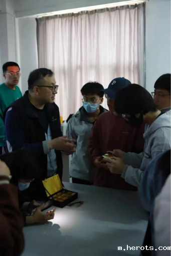 杜卫民老师先后在国家文物局文物流通中心(文物商店总店),国家博物馆藏品保管部、策展部、研究部工作,集陶瓷玉器鉴定与市场定价经营管理能力于一身。在讲座中,杜老师以中国传统玉石器为切入点,为同学们带来了一场横亘古今、融汇中外的玉石饕餮盛宴。杜老师从玉器的概念、玉石的类别、玉器雕刻工艺和用途等角度,图文并茂地讲解了世界各国典型玉石及其背后的故事。他还按照玉石的不同类别,甄选出部分从北京带来的个人藏品进行实物展示与讲解。同学们十分珍惜这次难得的机会,分批次涌到台前观摩把玩,久久不愿离去。